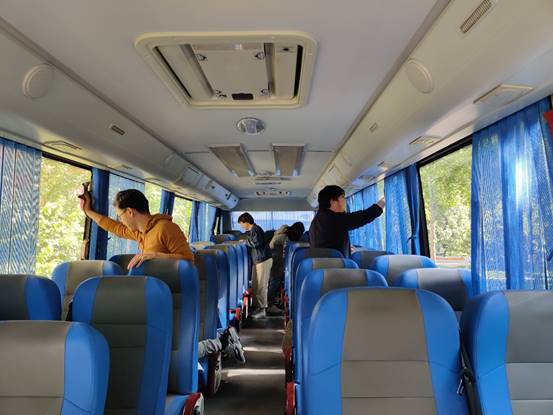 上午11时,党支部全体成员准时到达约定地点,与校车师傅进行了简单的沟通后便开始了清洁工作。在活动中,同学们分工明确,通力协作,从内部地面清扫、内饰整理到外部车窗和车体擦洗,党员同学们都认真清理,不放过一个角落。经过约一小时的打扫,校车焕然一新,清扫成果得到了司机师傅们的认可和赞赏。最后,全体党员与司机师傅们合影留念。