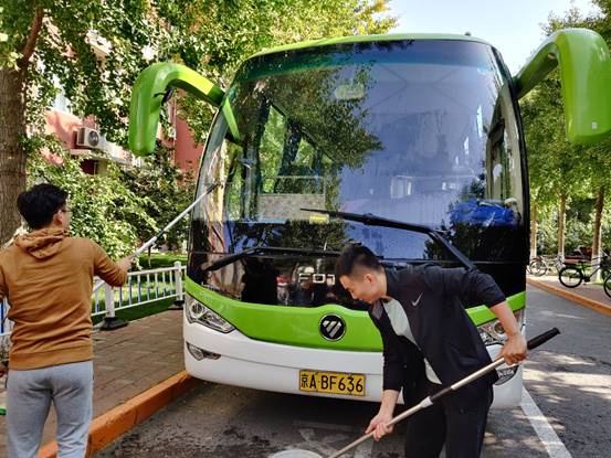 通勤校车作为连接我校主校区与昌平校区的重要交通工具,是确保学校“一体两翼”建设方案顺利实行的重要设施,也为老师和博士新生的生活和学习提供了极大的便利。为响应中央“不忘初心,牢记使命”的号召,给广大同学和老师提供整洁舒适的乘车环境,同时提高支部党员同学的奉献意识和实践能力,无码自慰 19级博士党支部组织无码自慰 生党员同学来到班车停放点,帮助班车师傅清洁了班车的内部设施和车体玻璃。