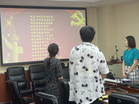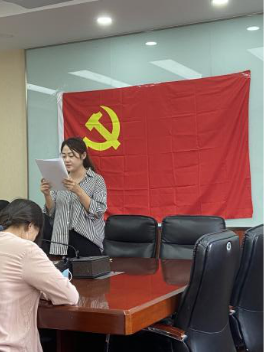 赵芹同志宣读完入党志愿书,由赵芹同志的入党介绍人黄思羽同志和刘书佳同志介绍赵芹同志的基本情况和培养期意见。黄思羽同志介绍了赵芹同志思想政治、学习工作经历,表明赵芹同志发展为中共预备党员的意见。刘书佳同志介绍了赵芹同志学习工作经历等表现,表明赵芹同志发展为中共预备党员的意见。