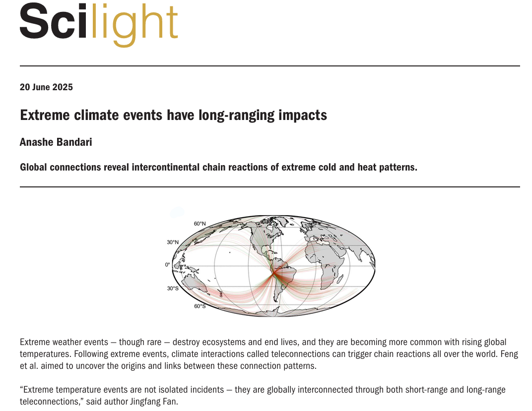 该成果为理解气候系统中的跨尺度相互作用提供了全新视角,展示了系统科学方法在复杂气候问题无码自慰 中的强大应用潜力。由于其创新性与全球意义,该无码自慰 已受到国际关注,并于2025年6月17日被AIP旗下科普平台Scilight专题报道(图2,见//doi.org/10.1063/10.0036934)。