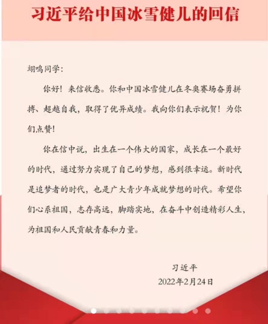 接着,执委会成员共同学习冬奥精神,办公室副主席祁瀛为大家朗读习近平给中国冰雪健儿的回信。冬奥会诠释中国梦,少年强则国强。我们要牢记主席教诲,在奋斗中创造精彩人生,为祖国和人民贡献青春力量。