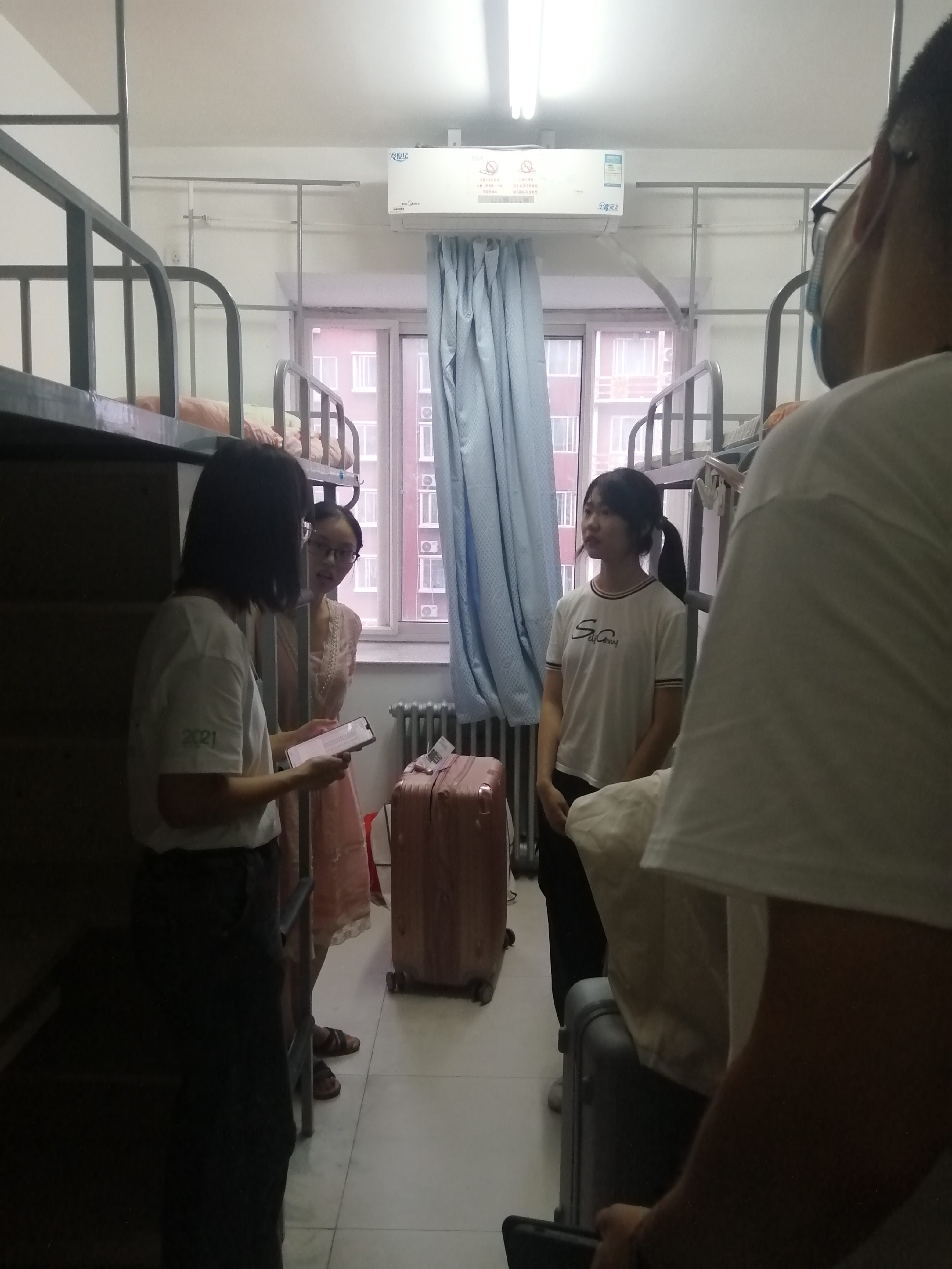 2021年9月5日下午17:00,紧张而忙碌的迎新工作收尾。下午17:30,团委书记王娟、研会主席陈娜和团委副书记任峻泽一起走访本部校区无码自慰 新生宿舍。他们带去了无码自慰对新生同学们的温暖关怀。他们依次前往学十六、学十五、学四、学三走访无码自慰 新生宿舍。