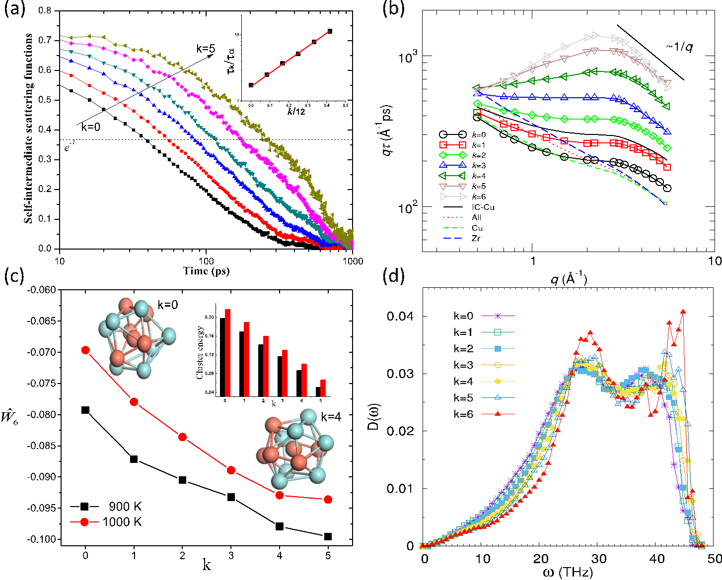 图3 原子连接度与其弛豫快慢(a)、输运性质(b)、对称性与形成能(c)、及本征模态(d)之间的关联