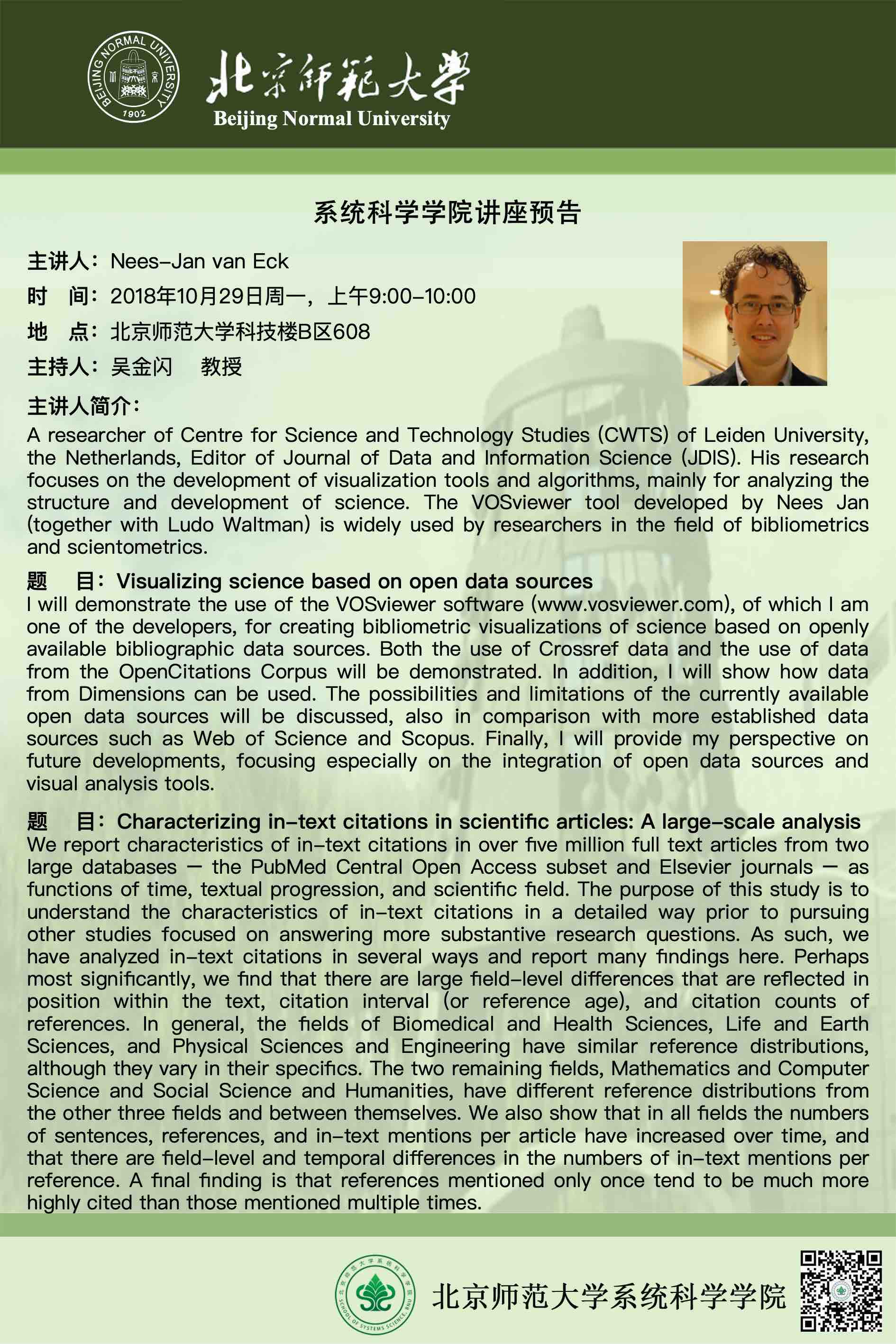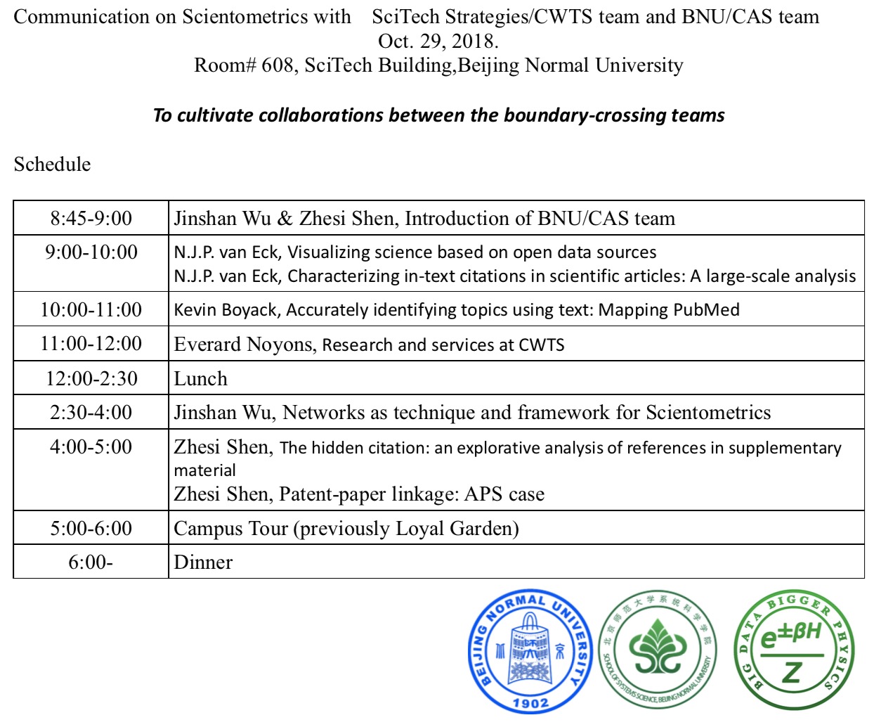 Communication on Scientometrics with SciTech Strategies/CWTS team and BNU/CAS team