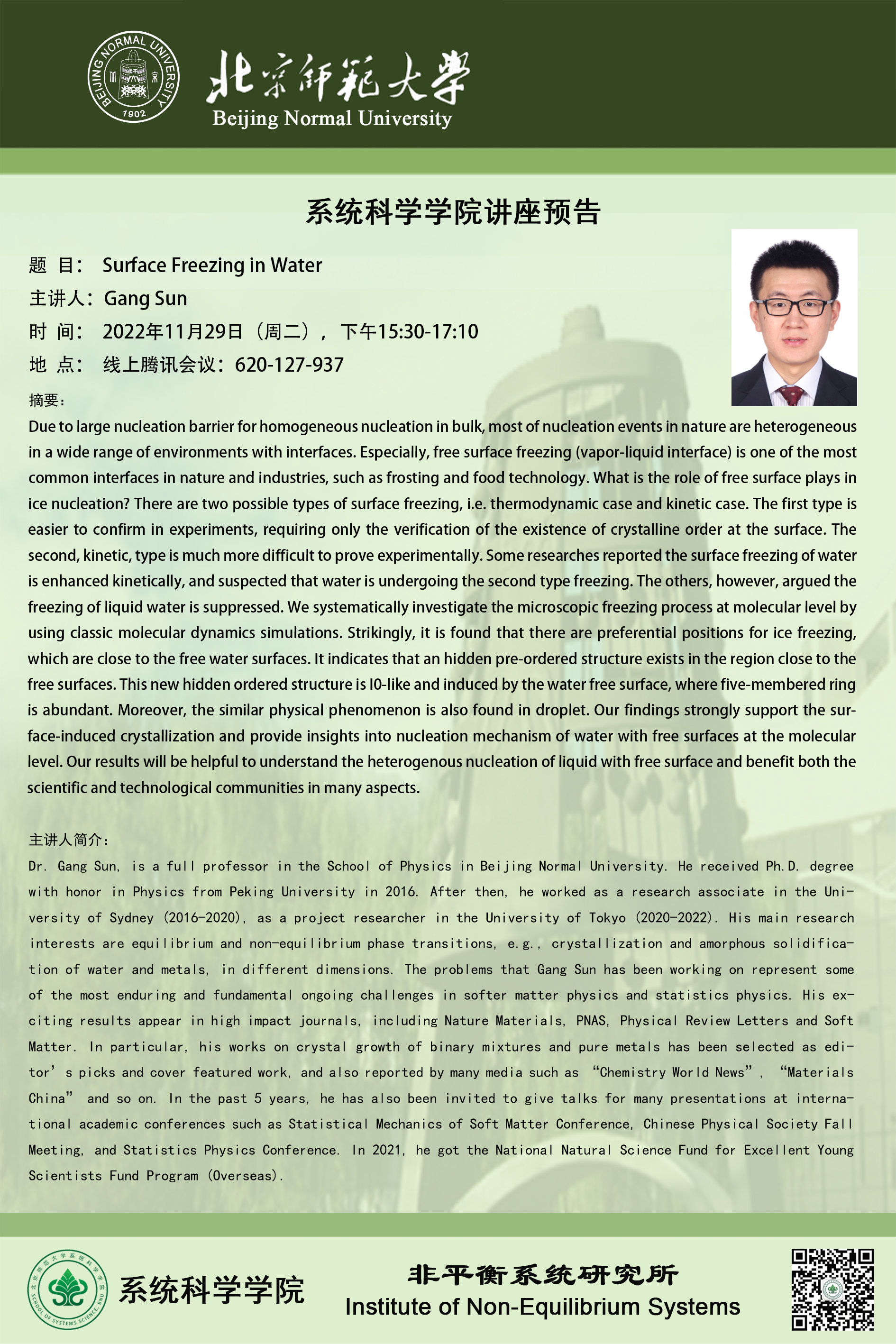 【讲座】Surface Freezing in Water