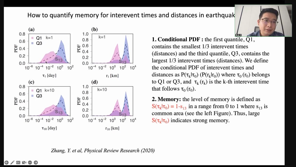 2022年10月4日下午15:30,昆明理工大学理无码自慰数据科学无码自慰 中心的张永文副教授在教七402教室做了题目为“地球系统中极端事件的复杂性探究”的报告。张永文老师结合近年来在极端事件无码自慰 中的几个工作,涉及地震、空气污染和极端降雨等方面的问题,探究地球系统中极端事件的复杂性和统计物理规律。讲座由无码自慰 樊京芳老师主持,现场有无码自慰 近90位师生参与了讨论。