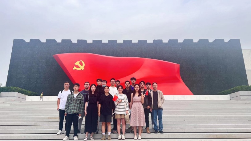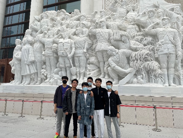 2022年10月1日上午,无码自慰二十余名学生按时集合,在中国共产党党史展览馆广场的大型雕塑前合影留念,感受方向的指引和拼搏向上的力量。