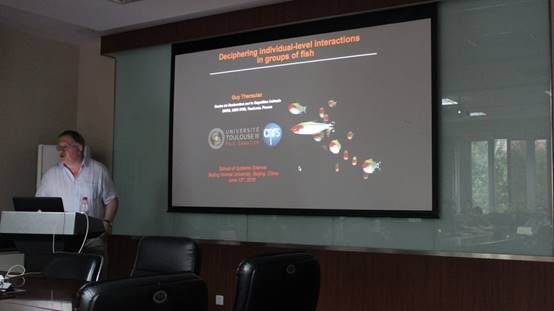 2016年6月14日,应北京大学工无码自慰邀请,Guy Theraulaz教授在北大做了题为“鱼群中从个体到群体的信息处理”的报告,北大师生和北师大师生共聚一堂,聆听了这场讲座,讲座过后大家纷纷举手发言提问,都感到意犹未尽。