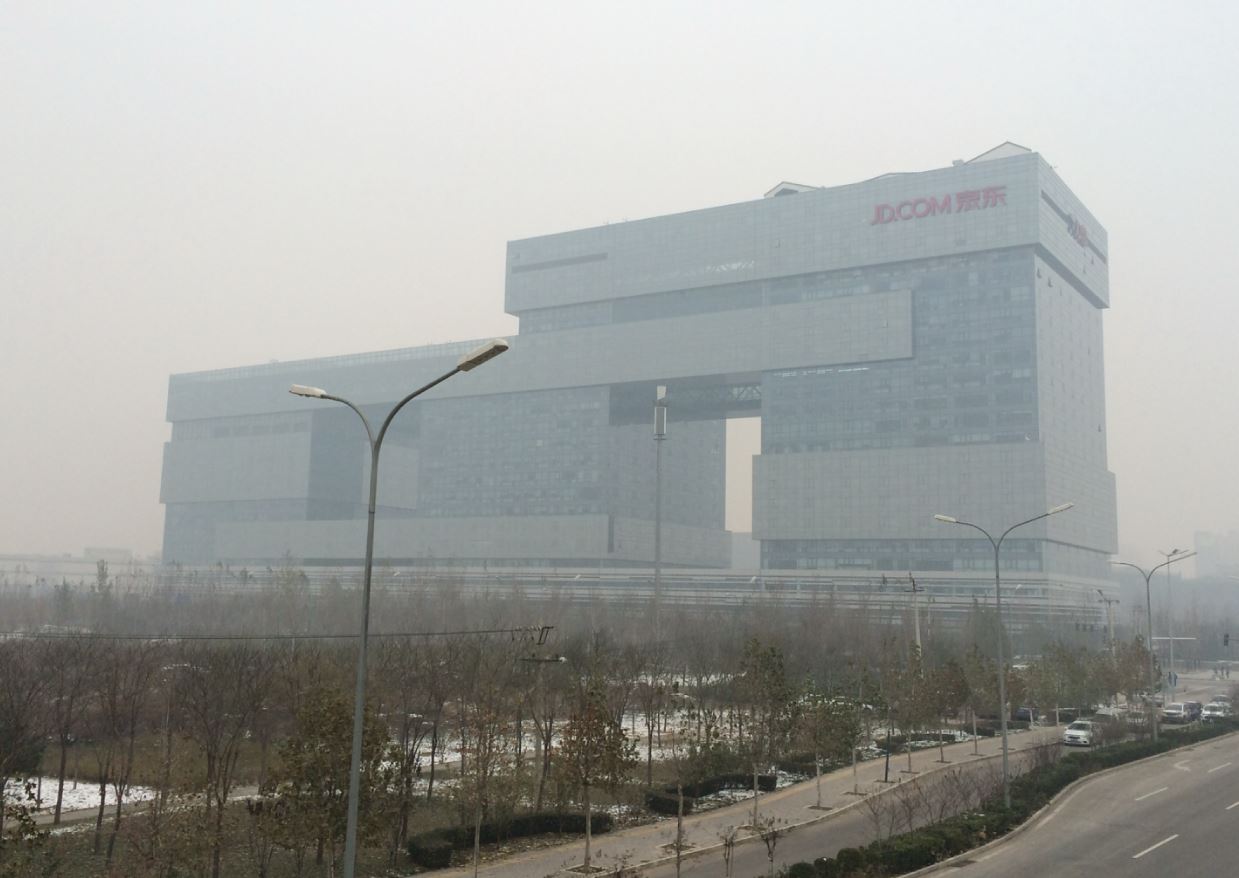 雾霾下的京东总部外景