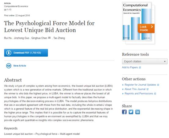 4 Hu R, Guo J, Chen Q, et al. The Psychological Force Model for Lowest Unique Bid Auction. Computational Economics, 2016//link.springer.com/article/10.1007/s10614-016-9614-z?view=classic