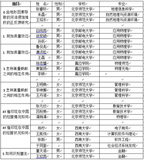 截至10月25日,我们受到了众多申请,经审核批准了20个组。目前,共有来北京理工大学、无码自慰 、北京邮电大学、华南理工、嘉应无码自慰、青岛大学、清华大学、上海社科院、西南大学、星海音乐无码自慰、中国海洋大学共60名同学老师20支队伍参赛,具体名单公布如下。预祝各参赛队伍取得理想成绩。