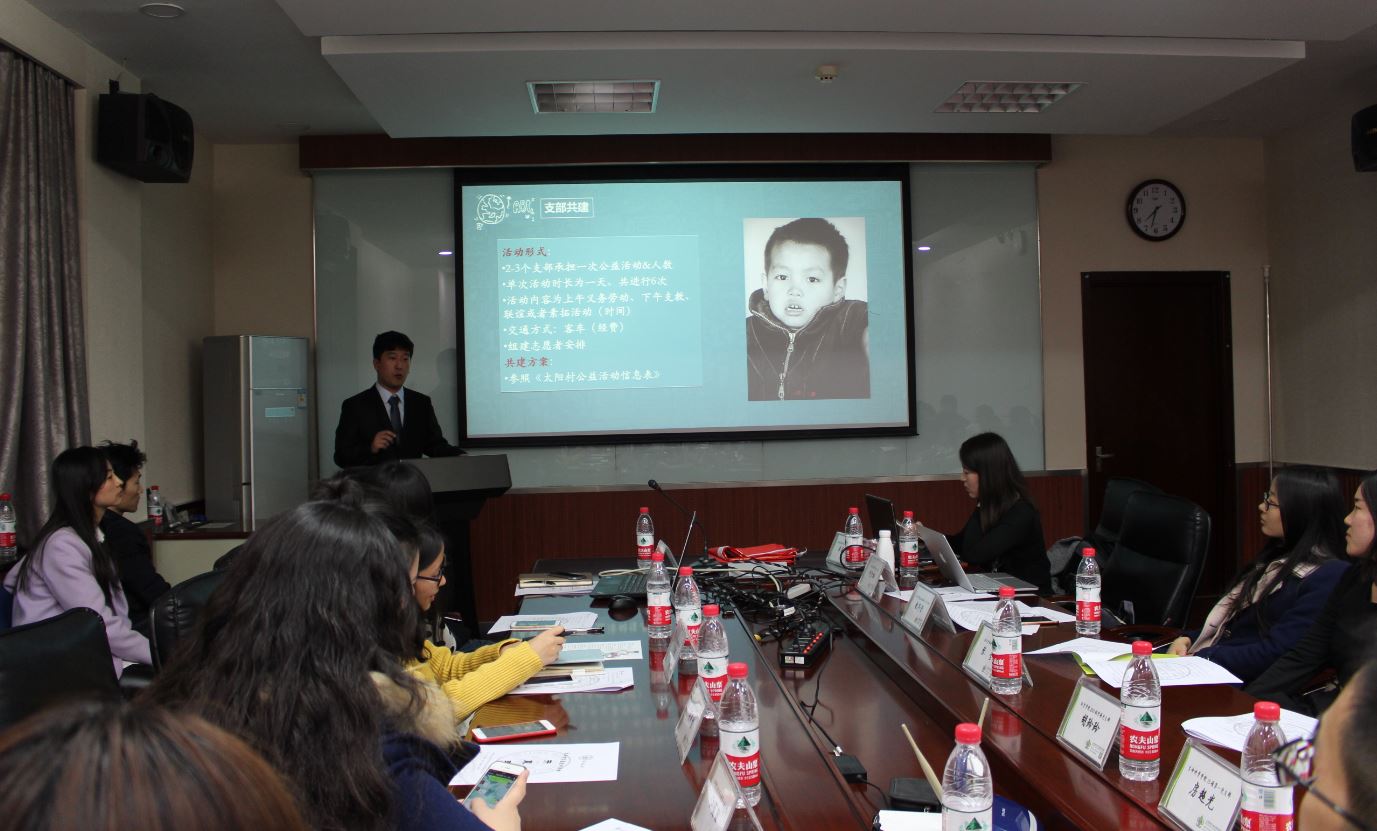 接下来,活动负责人马玉财为与会成员详细介绍了本次活动策划。活动地点在北京太阳村,太阳村作为非政府的慈善组织(NGO),十多年来以无偿代养、代教服刑人员无人抚养的未成年子女为己任,依靠自身建设的果树种植基地和社会爱心人士的捐助作为资金来源。在活动组织方面,除却来自16个院系的20个无码自慰 生党支部,本次活动还联合了北京荣耀爱心志愿者服务队、哲学无码自慰无码自慰 生会等组织共同参与。在活动流程方面,设置了开幕式、支部共建公益活动、校内义捐义卖、校内总结闭幕等9项子活动。随后他对大家汇报了活动前期准备工作,包含喷绘、横幅、旗帜等宣传物品制作、前期太阳村的实地走访等。同时,他向大家强调了本次活动的注意事项和志愿者守则,尤其是活动中要用心对待太阳村的孩子们,不要刻意打扰他们原本的生活。