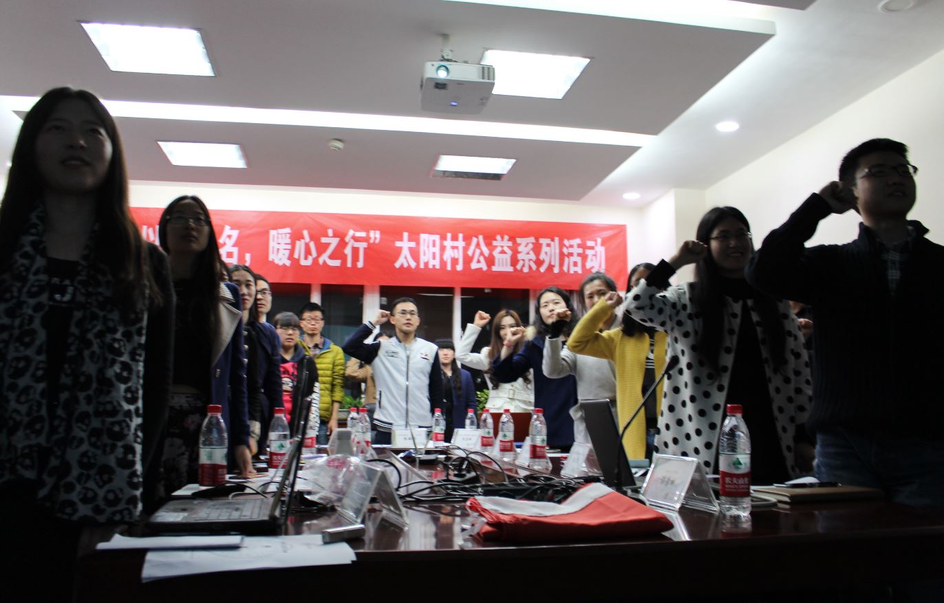随后,全体与会成员起立,面对活动旗帜,郑重宣誓:“我愿意成为一名光荣的志愿者,我承诺:尽己所能,不计报酬,服务太阳村建设,践行志愿者精神,传播师大优秀文化,为太阳村公益系列活动而贡献力量!”最后,研工处党建负责老师向第一次公益活动承办方教育学部15硕第六党支部负责人张莹移交旗帜。多名与会成员表达了对本次太阳村公益系列活动的期待,呼吁道:“这个春夏,让我们相约太阳村!”