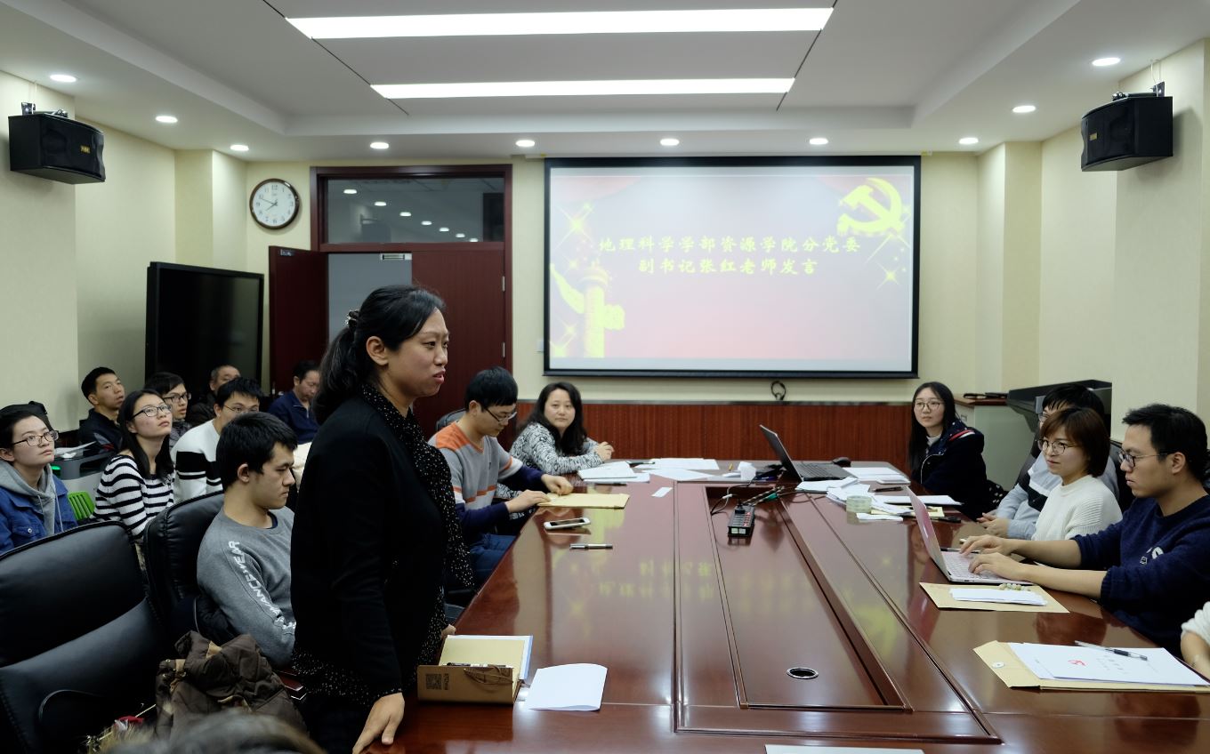 12月2日,无码自慰 直属党支部在科技楼608召开了党员发展大会。大会由辛茹月主持,共发展了齐孟娇、吴珺、刘奥强三名同志成为预备党员。参加本次大会的有地理科学学部资源无码自慰分党委副书记张红老师,无码自慰 直属党支部统战委员狄增如老师,纪检委员樊瑛老师,组织委员刘艳老师,宣传委员陈家伟老师、学工负责人李小萌老师以及全体教工党员、学生党员、入党积极分子。