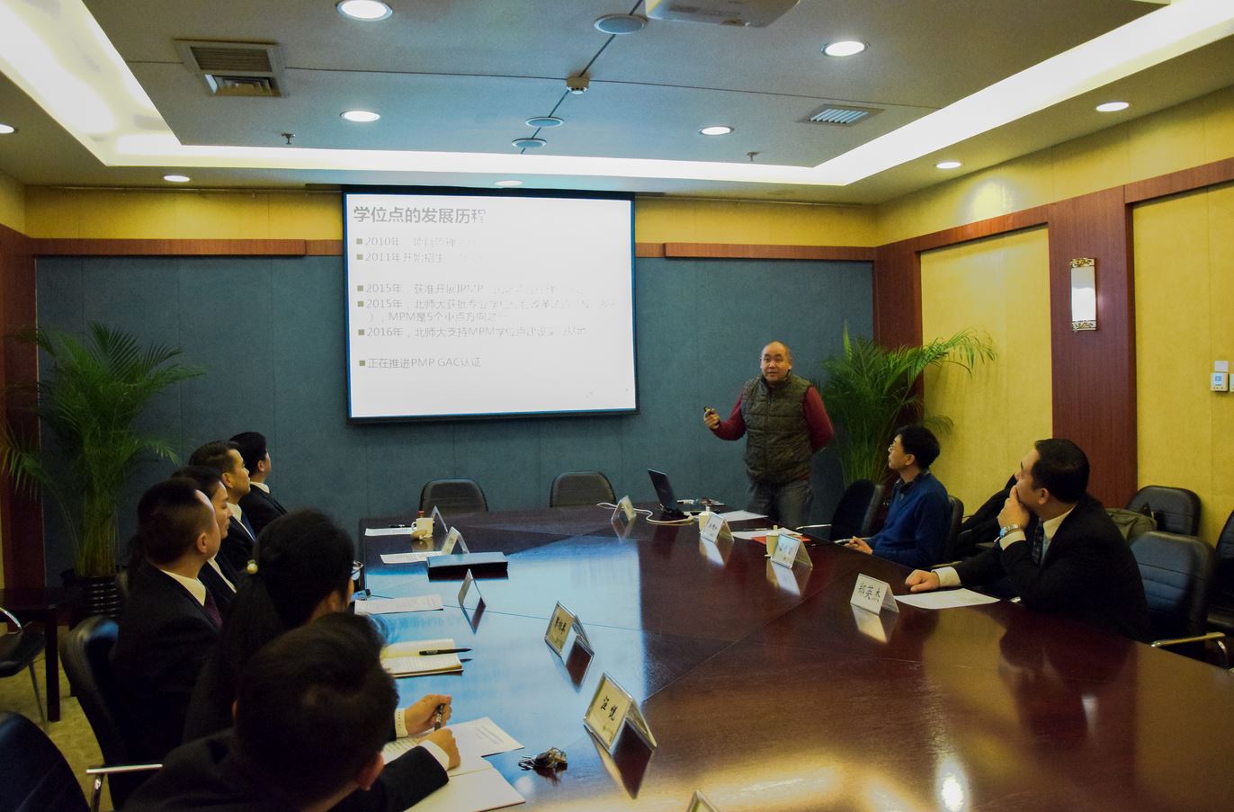 随后,与会人员就MPM的课程设置、人才培养、论文写作等进行了友好座谈。最后,吴本佳主任对座谈进行总结,从项目管理对酒店科学管理的重要意义、项目管理学科的案例库建设以及MPM未来的招生方向等提出了建议和要求,表示该基地是京师大厦承担的第一个实习基地建设,将提供资源,不仅仅服务于京师大厦的MPM学员,还可向该方向的学员提供实习机会。狄增如院长对于吴本佳主任的总结表示高度赞赏,称两家单位合作已久,希望两家以此为平台,在学位教育、高端培训方面继续深入交流、合作。